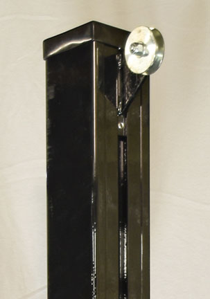This solid system is made in the USA and is constructed of 4″ square extruded structural aluminum, which is 100% rustproof and has excellent bend resistance. The post and steel hardware components are finished with a black, baked-on polyester powder coat finish. This strong finish adds resistance to chipping and the ultimate weather protection against the elements. Poles are 10’6″ high, and the complete system is only 150 lbs., half the weight of a comparable steel system.