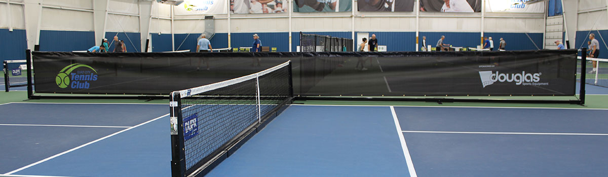 The standard Douglas® Pickleball Court Divider System is also available. It is ideal for both indoor and outdoor courts when in-ground installation is an option.